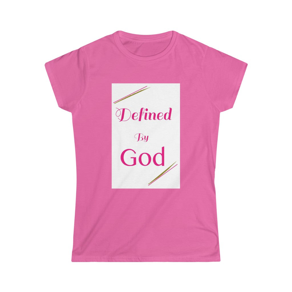 The “Defined” woman's softstyle tee is a more feminine take on the classic tee, and is perfect for any woman to wear casually, and to represent with style. The sleeves are shortened to reveal some shoulder. The fabric is a blend of cotton and polyester. There are no side seams because the garment is knit in one piece. The shoulders are taped with twill to prolong durability. The collar seam is reinforced with ribbed knitting. Please note: all sales are final, with no refunds and no exchanges. Runs true to size.